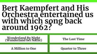 In this fun 1960s Songs quiz we're going to ask questions like "Percy Sledge entertained us with which song back around 1967?" and "Bert Kaempfert and His Orchestra entertained us with which song back around 1962?".