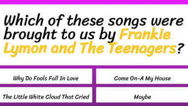 4/10 is what people on average are scoring in this trivia quiz so far. Are you ready to answer questions like "Which of these songs were brought to us by "Frankie Lymon and The Teenagers"?" and "Which of these songs were brought to us by "The Fontane Sisters"?"